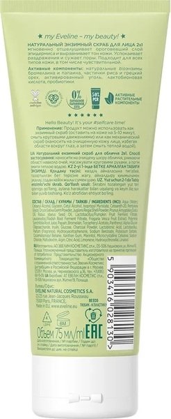 - Eveline Cosmetics Натуральный энзимный скраб для лица 2в1 серии beauty & glow, 75 мл