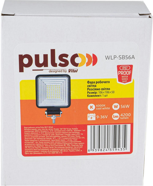 - Фара рабочего света PULSO Flood 9-36В 6000К 106x106x50мм (WLP-SB56A)