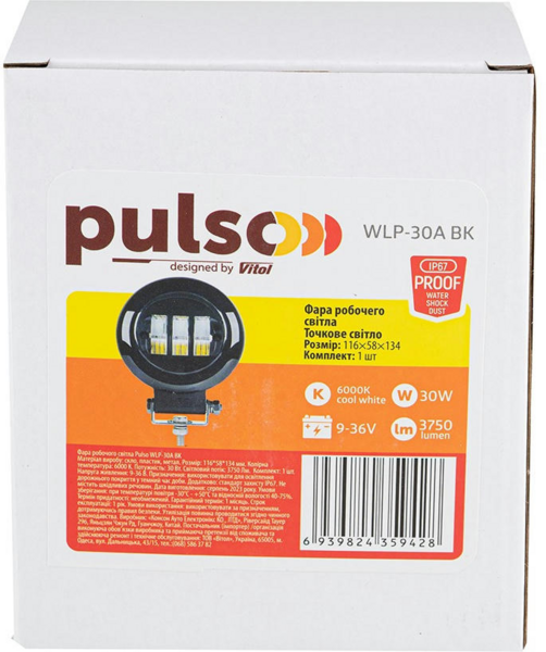- Фара рабочего света PULSO Spot 9-36В 6000К 116x58x134мм (WLP-30A_BK)