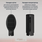 | Насадки | Концентратор, Круглая щетка, Насадки для завивки, Щетка |