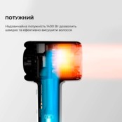 Фен оборудован современным и скоростным двигателем, который развивает скорость воздуха до 70 метров в секунду. Такая мощность позволит вам быстро высушить волосы любый длины и густоты. Также такой напор воздуха пригодится для совершения укладки волос перед встречей, свиданием или походом в ресторан.