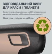 Фен изготовлен минимум на 30% из переработанных материалов, включая 60% переработанного пластика. Выбирай стиль с заботой о будущем.