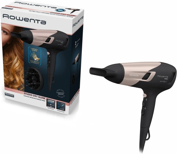 Фен для волос Studio Dry Glow от Rowenta: безупречный блеск, создание совершенного стиля, красивых ухоженных волос. Генератор ионных частиц снижает статику волос, придает им блеск и делает более гладкими и послушными.