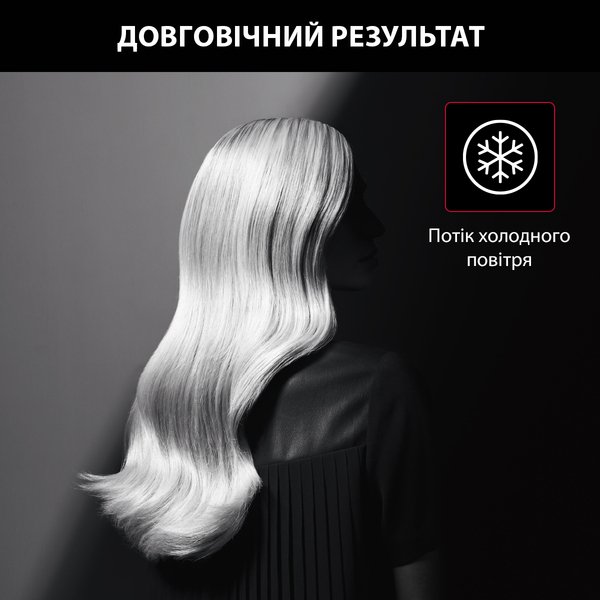 Функция прохладного воздуха фиксирует прическу в конце сеанса сушки феном для долговременных результатов и непревзойденного стиля.