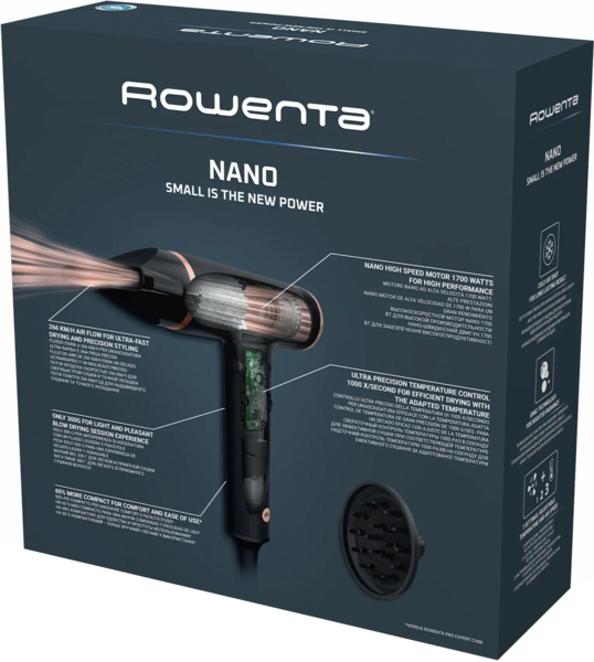 Мощный и компактный фен Rowenta Maestria Nano подходит для быстрой и точной сушки волос.