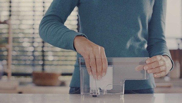 Технология ионного обмена удаляет кальций из воды еще до ее попадания в кофемашину, предотвращая образование накипи. Если вовремя менять фильтр в соответствии с рекомендациями устройства, один фильтр позволяет приготовить до 625 чашек.