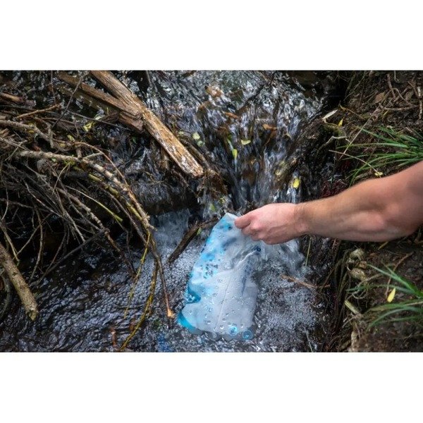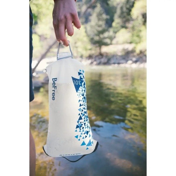 Мягкий резервуар HydraPak, не содержащий токсичных BPA и PVC, удобно наполнять благодаря пластиковой ручке у горлышка. Функциональный шланг с клапаном подачи позволяет пить прямо из фильтра, наполнить чистой водой флягу, котелок, питьевую систему и т. д. или использовать BeFree Gravity 3 L в качестве рукомойника.
