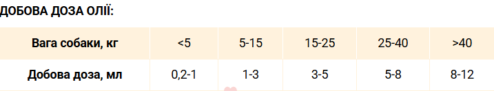 Добавку надо вводить постепенно, начиная с 1/2 дозы от рекомендуемой. За неделю довести до нормы. Масло можно добавлять в пищу или давать отдельно. Курс употребления - два раза в год, в течение 2-4 недель с началом линьки (весенней и осенней). Принимать кобелям и сукам за 1-2 недели перед вязкой и в период вязки. Щенкам средних и крупных пород в стадии активного роста, начиная с 4 месяцев.