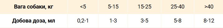 Курс приема — 2-4 недели. При необходимости повторять 2-3 раза в год. Протирать уши животным для устранения зуда и отека.