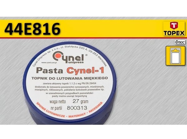 Для мягкой пайки использую флюс TOPEX 44E816. Очень доволен тем, что он расходуется достаточно медленно, даже при частой работе. Отлично справляется при мягкой пайки медных систем. Но и в других сферах замечательно себя показывает. В принципе, он полностью окупает свою стоимость качеством. Правда есть один негативный эффект - это запах конечно же.