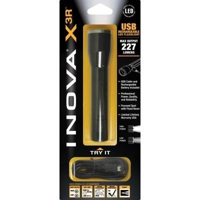 Светодиодный фонарик INOVA X3R разрабатывался с оглядкой на превосходную функциональность, долговечность и мощность. Кроме того, инновационный порт Mini USB, встроенный в него, означает, что фонарик можно заряжать от разнообразных источников энергии, обеспечивая себя часами бесперебойного, надежного освещения. С его великолепной проекцией света и незыблемой надежностью, светодиодный фонарик INOVA X3R на базе литиево-ионного аккумулятора, предназначен для долгих лет профессиональной службы. Корпус изготовленный из прецизионно обработанного алюминия предлагает полноценное анодированное покрытие и ударопрочные характеристики, наряду с водостойкостью. Запатентованная оптическая система защищена головкой из нержавеющей стали, а внутри скрывается мощный светодиод на 35.000 часов работы, окруженный отражателем из прецизионно обработанного алюминия с управлением температурными режимами. Запатентованная 3-режимная крышка-переключатель фонарика активирует режимы высокой и низкой мощности, а также режим блокировки. В комплекте с фонариком приходит и USB-кабель для зарядки устройств с любым совместимым выходом USB на 5Вт, включая адаптеры переменного тока, постоянного тока, компьютеры и солнечные батареи. Его Mini USB-порт и индикатор заряда защищены водостойким уплотнителем - просто скрутите головку фонарика для зарядки и закрутите назад, когда фонарик будет заряжен.