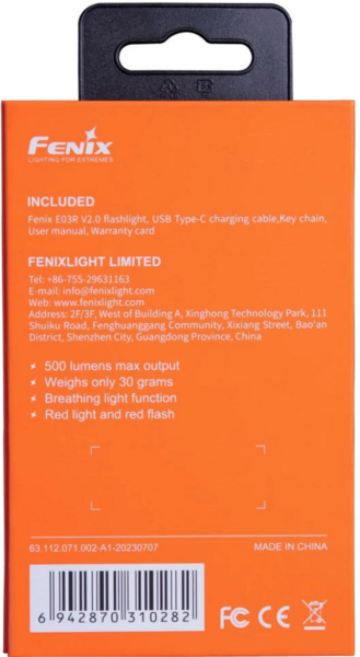 - Фонарь наключительный Fenix E03R V2.0, красный
