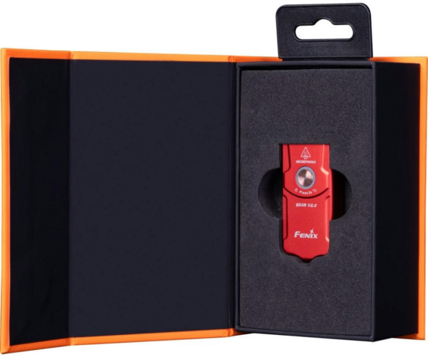 Фонарь-брелок Fenix E03R V2.0 излучает свет мощностью 500 люмен на расстояние 90 метров. Это модель для повседневного ношения, выпущенная ограниченным тиражом. Изготовленный из алюминия корпус красного оттенка выдерживает механическое воздействие и отличается герметичностью. Встроенный литий-полимерный аккумулятор позволяет модели работать в течение 30 часов. Конструкция весит 30 грамм. Фонарь поставляется в подарочной упаковке.