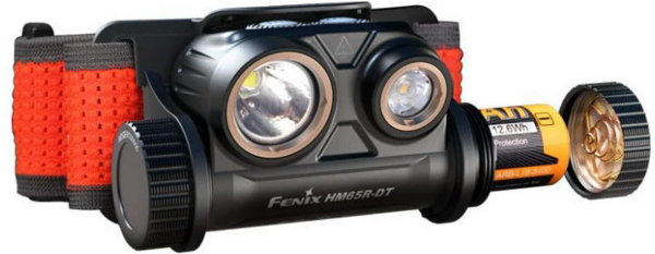 Функциональные особенности и конструкция Fenix HM65R-DT разработаны с учетом потребностей спортсменов, которые не привыкли отказываться от тренировок в темное время суток. Фонарь с налобным креплением также подходит для туризма и активного отдыха, поскольку освещает дистанцию до 170 метров и при этом освобождает обе руки для других действий. В модели присутствует два рефлектора — в каждом по одному светодиоду. С одной стороны это белый диод Luminus SST40 с цветовой температурой света 6500К, с другой — Luminus SST20 с теплым лучом 3000К. Светодиоды работают по отдельности и имеют разные параметры света: max яркость белого освещения достигает 1300 люмен, а яркость теплого луча — 400 люмен. Однако данные элементы имеют одну схожую характеристику — узконаправленный луч света, который подходит для точечного освещения отдельных предметов. Мощность освещения меняется от наименьшей до самой высокой. Для предотвращения включения фонаря во время транспортировки и экономии заряда элементов питания, рекомендуется активировать электронную блокировку после каждого использования. Чтобы это сделать, нужно нажать и удерживать любой переключатель в течение 3-х секунд, пока осветительное устройство четырежды не мигнет теплым лучом. С этой целью также можно одновременно зажать обе кнопки управления, что подходит и для разблокировки фонаря. Источник питания Фонарь HM65R-DT функционирует при напряжении 3.6 В, а рабочий ток составляет 4.2 А. Номинальная мощность модели равна 15 Вт. Необходимыми характеристиками для питания устройства обладает брендовый Li-ion аккумулятор 18650, который имеет емкость 3400 мАч. Как альтернатива допускается применение пары батареек CR123A. При условии использования фирменного аккумулятора пользователю доступны несколько полезных функций: зарядка элемента питания в течение 3-х часов через встроенный в корпус порт USB Type-C и индикация уровня заряда аккумулятора, которая позволяет контролировать оставшуюся часть заряда элемента и своевременно заряжать его или заменять на новый. Индикация включается кликом любой кнопки управления, когда фонарь выключен: 4 индикатора: 100% - 80%; 3 индикатора: 80% - 60%; 2 индикатора: 60% - 40%; 1 индикатор: 40% - 20%; Мигание индикатора: 20% - 1%. Физические параметры В отличие от большинства налобных фонарей бренда, корпус HM65R-DT производится из магниевого сплава — ультралегкого металла, который снижает вес оболочки до 91 грамма и делает ее минимально ощутимой во время ношения на голове. Сплав эффективно справляется с разрушительным воздействием температуры от -35°C вплоть до 45°C и противостоит появлению коррозионного налета. Вне зависимости от того, какой из сторон ударился фонарь, он не ломается, если высота падения составляет 2 метра.