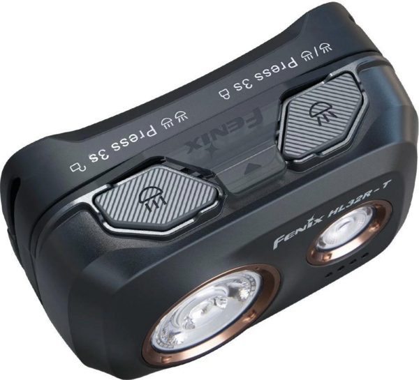 Созданная специально для трейлраннеров и просто любителей активного отдыха, налобная модель HL32R-T отличается не только яркостью и разнообразием генерируемого света, но и облегченной конструкцией для более удобной эксплуатации. Фонарь оснащен двумя диодами с разной цветовой температурой освещения: Luminus SST20 — 6500К, Redslight — 4000К. Каждый диод управляется отдельным переключателем, вынесенным в верхнюю часть конструкции. Максимальная яркость модели составляет 800 люменов, а дальность света достигает 132 метра. Особенности управления: Интерфейс управляется простыми нажатиями и зажатиями одной из двух кнопок в зависимости от группы света, которую хочет использовать владелец модели. Включение/выключение освещения осуществляется зажатием одной из кнопок на 0.5 секунд. Изменение режима работы выполняется коротким нажатием на кнопку. В модели также есть возможность электронной блокировки, которая активируется зажатием одной или сразу двух переключателей в течение 3-х секунд. Для разблокировки требуется повторно выполнить данную процедуру. Источник питания: Fenix HL32R-T заточен под работу на аккумуляторном Li-ion блоке ARB-LP1900 фирменного производства. Данный аксессуар находится в комплекте с фонарем и обеспечивает модели впечатляющую автономность до 12.5 дней. Блок заряжается в течение 3 часов через стандартный порт Type-C. Необходимый для этого кабель USB также присутствует в наборе. В передней части конструкции находятся четыре небольших индикатора, которые отображают текущий уровень заряда аккумуляторного блока. Его можно вычислить на основе количества горящих индикаторов: 1 индикатор – 20%-0%; 2 индикатора – 50%-20%; 3 индикатора – 80%-50%; 4 индикатора – 100%-80%. Аккумуляторный блок можно заменить тремя батарейками форм-фактора ААА, но в таком случае функция цветной индикации заряда станет недоступна. Физические параметры: Модель HL32R-T разрабатывалась для бега и занятий другими видами спорта, поэтому, помимо функциональности, упор также был сделан на легкость конструкции. Для этого в качестве материала корпуса был выбран магниевый сплав, характеризующийся легкостью. При этом сплав надежно защищает электронику от повреждений в случае механического воздействия. Это демонстрируют множественные тестирования модели, которые доказали, что корпус без проблем выдерживает падения с двухметровой высоты. Фонарь может работать в разных погодных условиях: в зимние морозы при температуре воздуха вплоть до -35°C и в летнюю жару, когда столбик термометра поднимается до отметки 45°C. Класс герметичности оболочки IP66 допускает эксплуатацию модели во влажной среде и предотвращает попадание внутрь пыли, песчинок и других засорений через стыки корпуса. Конструкция HL32R-T укомплектована эластичным налобным креплением с запатентованным механизмом регулировки длины. Это можно сделать одной рукой: оттянуть круглый регулятор в боковой части крепления, растянуть/затянуть резинку поворотом регулятора и нажать его, поместив в исходное положение.