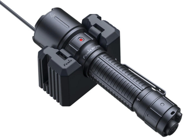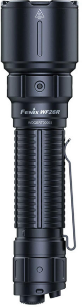 Fenix WF26R - высокопроизводительный фонарь ручного типа от компании Fenix. Модель является усовершенствованной версией Fenix RC20 и генерирует свет яркостью 3000 люмен. Дальность луча варьируется в пределах 47-450 метров, позволяя качественно подсветить объекты на ближних и дальних дистанциях. За освещение отвечает светодиод Luminus SST70 белого цвета с ресурсом работы не менее 50 тысяч часов. В качестве источника питания используется фирменный Li-ion аккумулятор ARB-L21 V2.0 емкостью 5000 мАч, который обеспечивает стабильную работу устройства до 44 часов в экономном режиме. Для восполнения заряда элемента питания достаточно поместить фонарь в специальную подставку с магнитным кабелем (5В 3А) - процесс зарядки от 0% до 100% занимает 3 часа. Стационарная подставка крепится к столу, фиксируется на стене и на любой другой ровной поверхности для удобства эксплуатации. Магнитный кабель можно отсоединить от подставки и носить в кармане, чтобы быстро подзарядить фонарь в дороге от переносного Power Bank. Корпус изготовлен из авиационного алюминия А6061-Т6, который выдерживает механическое воздействие и защищает внутреннюю электронику от повреждений при падении фонаря с высоты 1 метра. Степень влагозащиты соответствует классу IP68 - максимальный уровень герметичности, что предотвращает попадание внутрь мелких загрязнений и позволяет использовать фонарь под водой на глубине до 2 метров.