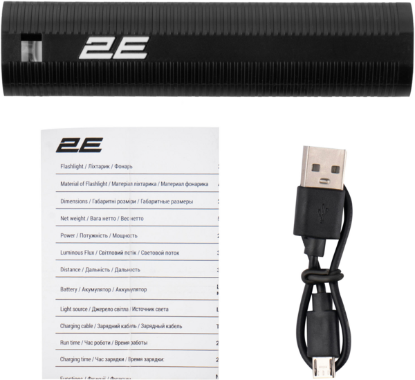 Фонарь ручной 2E, micro USB, 1000мАч, 1000лм, 1Вт (2E-PYB6010BI)