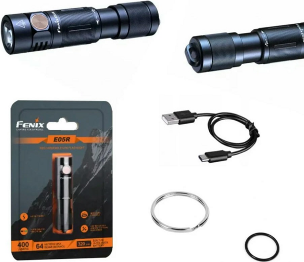 Фонарь Fenix E05R — компактная и достаточно легкая модель-брелок. Она предназначена для ежедневного использования. Имеет четыре уровня яркости, управляется с помощью боковой кнопки, защищена от перегрева корпуса. Используемый светодиод — Cree XP-G2 S3 белого света. Фонарь прочный, устойчив к износу, защищен от влаги и пыли.