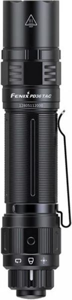 Фонарь модели Fenix PD36TAC является тактическим прибором, который пригодится вам в различных видах активного отдыха и туризма. Обеспечивает наибольший световой поток в 3000 люменов, а дальнобойность луча достигает 274 метров. Применен светодиод-Luminus SST70. Срок службы такого светодиода достигает 50000 часов. В комплекте вместе с фонарем предусмотрели литий-ионный аккумулятор 21700. Управление осуществляется через запатентованную двухфункциональным кнопку, которая производит мгновенную тактическую активацию. Режимы разделены на две группы: "тактические" и "очередные". Это позволяет гибко выбирать и удобно управлять фонарем. Выбирать режимы можно буквально одной рукой, с помощью переключателя. Чтобы случайно не включить фонарь тогда, когда в этом нет необходимости, предусмотрена специальная опция блокировки. PD36TAC характеризуется тактической кнопкой с тремя функциями: нажатие вполсилы (включение, выключение, выбор режима), нажатие до щелчка (длительная работа в «дежурных» режимах), нажатие и удержание 0,8 секунды (Строб). Тактические режимы усиливают фонарь более быстрым управлением, а также облегчают выбор максимального режима и мгновенного Строба. Перейдите в "очередные" режимы, для этого переключатель. Фонарь имеет шесть уровней яркости, в том числе, сигнал «стробоскопа». Механическая кнопка исключает магнитные помехи. Световой поток в данном режиме составляет 2000 люменов. Продолжительность свечения-3:00 10 минут. Дальнобойность — 225 метров. Интенсивность освещения: 12600 кандел.