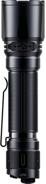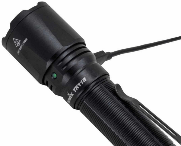 Созданный для тактических целей, фонарь Fenix TK11R может работать в 4-х режимах, включая режим Высокий яркостью 1600 люмен и мигающий стробоскоп. Благодаря двум хвостовым кнопкам можно быстро переключаться между режимами одной рукой. Li-ion аккумулятор 18650 емкостью 3400 мАч питает фонарь в течение 25.5 часов и заряжается через порт USB Type-C. Алюминиевый корпус (A6061-T6) с многочисленными теплоотводящими ребрами не боится падений с метровой высоты. Его вес равен 117.5 г.