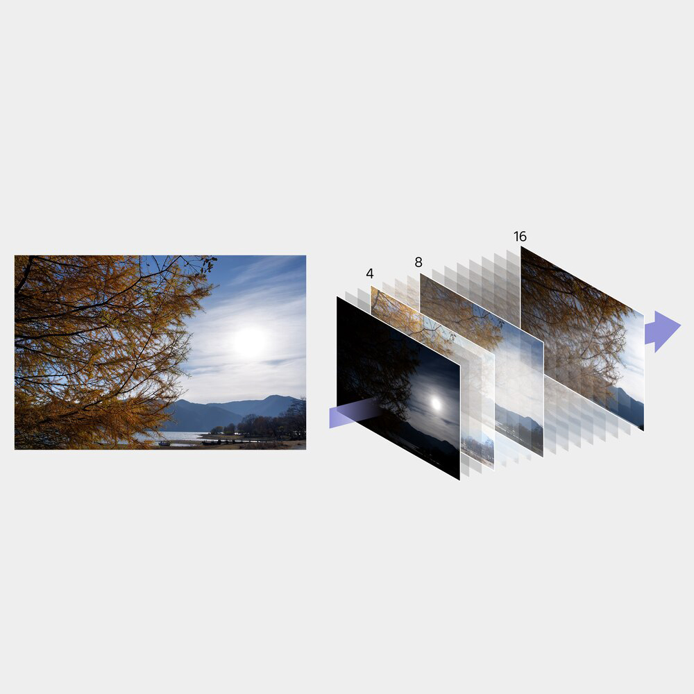 Новая матрица с эффективным разрешением 33,0 мегапикселя и механизм обработки BIONZ XR2 поддерживают динамический диапазон до 16 шагов. Плавные градации от теней к светлым участкам позволяют эффективно обрабатывать HDR, а действенное шумоподавление при любой чувствительности гарантирует высокое разрешение в диапазоне ISO 100-51200 для фото и видео.
