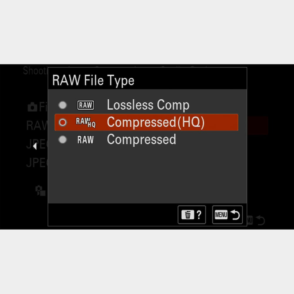 Легкий формат RAW позволяет получить высокое качество изображения в меньших по размеру и более простых в обработке файлах. Формат Compressed (HQ) предлагает даже большее сжатие легких файлов RAW без потери качества изображения, а формат Compressed позволяет снимать дольше.
