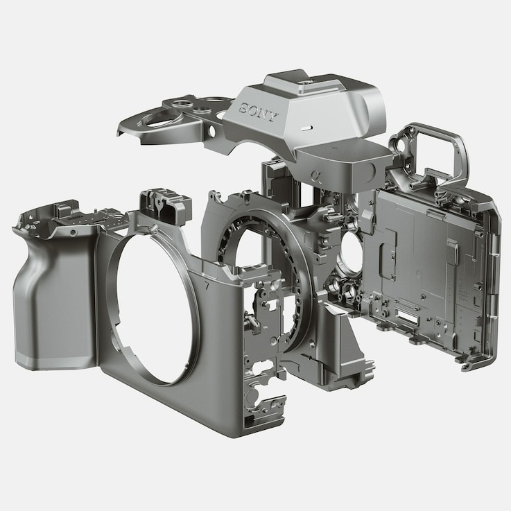 Внутренний каркас, верхняя, передняя и задняя крышки изготовлены из легкого и прочного магниевого сплава. Рукоятка и передняя крышка изготавливаются как единый блок, чтобы улучшить прочность, а крепление усиливается шестью дополнительными винтами. Это обеспечивает надежность при съемке с большими и тяжелыми объективами, такими как супертелеобъектив.