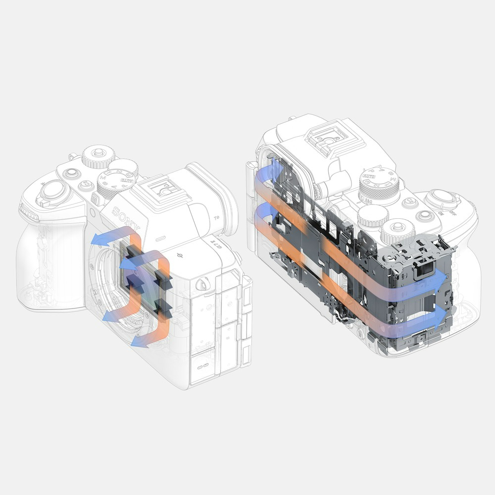 Благодаря эффективному рассеиванию тепла можно непрерывно снимать 8-битное видео с субдискретизацией 4:2:0 в формате 4K 60p в течение примерно 90 минут. Система стабилизации изображения оснащена уникальным графитовым компонентом, который позволяет матрице изображения, основному источнику тепла в корпусе камеры, свободно двигаться во время стабилизации и одновременно отводить тепло, обеспечивая эффективное рассеивание.