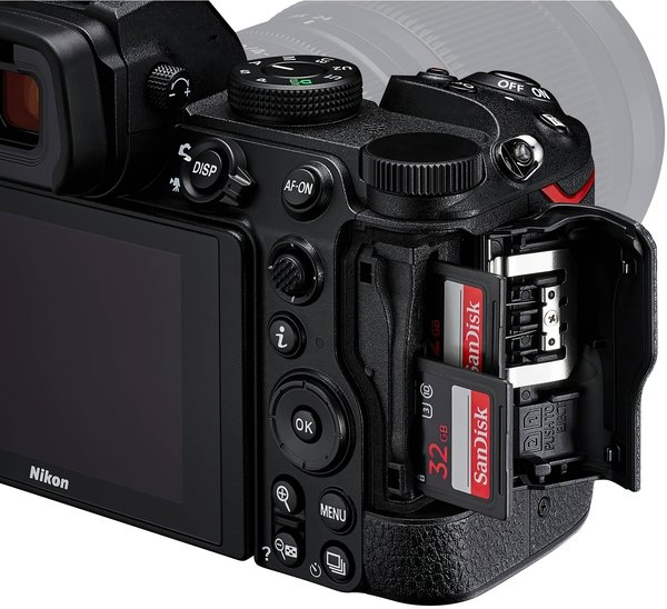 Два гнезда поддерживают быстрые SD-карты UHS-II. Легко настройте гнезда, чтобы использовать одну карту для съемки, а другую — для резервного копирования. Или сохраняйте видеоролики на одной карте, а фотографии — на другой.