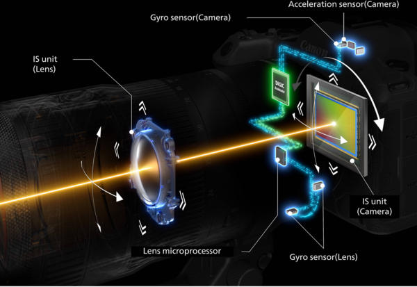 EOS R5 – первая камера Canon с 5-осевой IBIS-стабилизацией. Она снижает эффект дрожания камеры при съемке как фото, так и видео. Система стабилизации в камере также совместима с оптической стабилизацией на объективах Canon RF и EF.