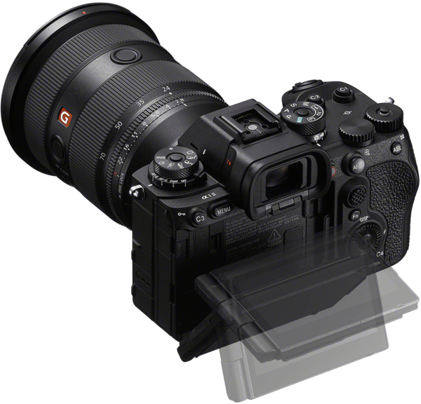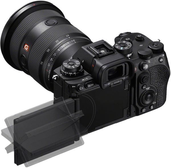 4-осевой многопозиционный монитор можно разместить в оптимальном положении для просмотра как в горизонтальной, так и в вертикальной ориентации. Монитор можно наклонять вверх примерно на 98° и вниз примерно на 40° к задней части камеры, а также в сторону на полные 180°. Шарнир малозаметен, но прочен. Большая 3,2-дюймовая сенсорная панель с разрешением 2,1 миллиона точек поддерживает широкую цветовую гамму и предназначена для четкого просмотра на открытом воздухе.