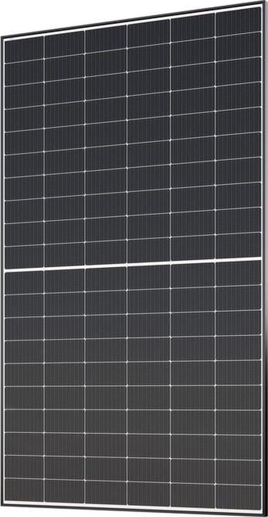 Эта панель является двусторонней, что позволяет генерировать до 25% дополнительной энергии тыльной стороной панели. Панель использует технологию Halfcell, которая разделяет каждую ячейку на две части, что уменьшает потери энергии и повышает эффективность работы. Технология MBB обеспечивает лучшую проводимость и снижает сопротивление, что также способствует повышению эффективности.
