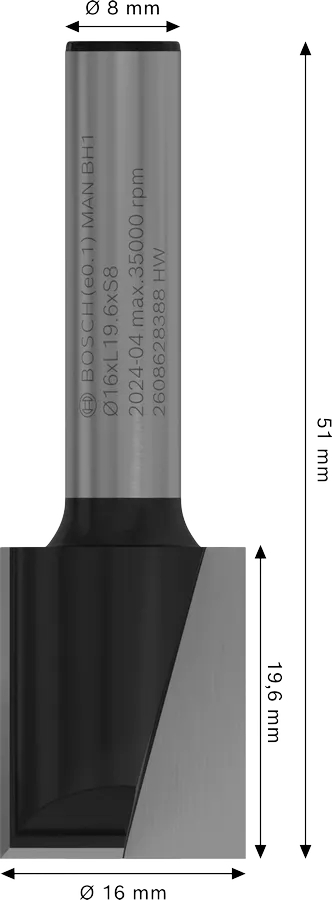 Фреза пазовая Bosch Professional с двумя лезвиями Std S8 D16 L19.6 мм (2.608.628.388)