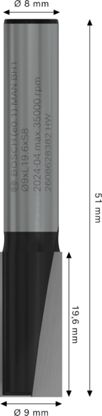 - Фреза пазовая Bosch Professional с двумя лезвиями Std S8 D9 L19.6 мм (2.608.628.382)