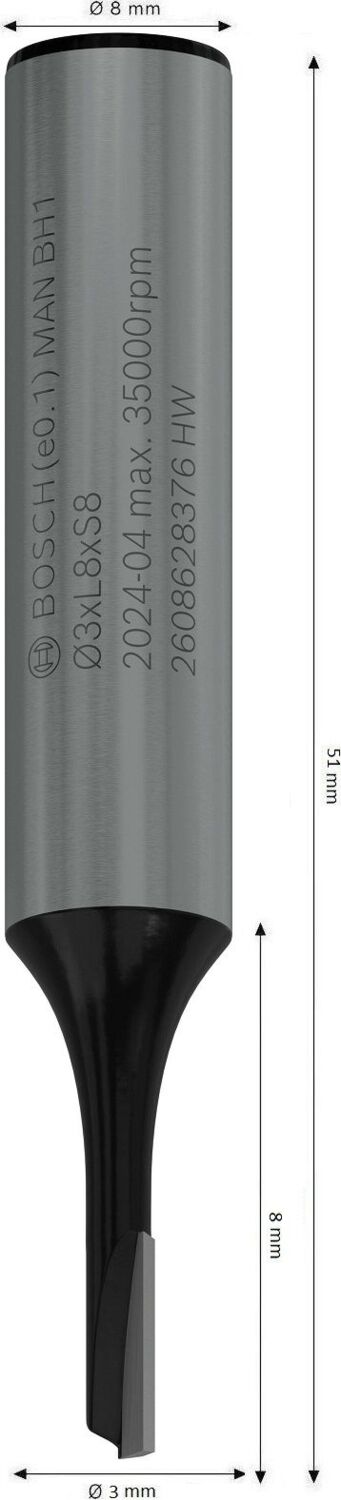 Фреза пазовая Bosch Professional с одним лезвием Std S8 D3 L8 мм (2.608.628.376)