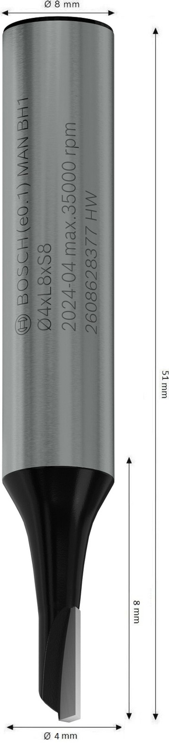 Фреза пазовая Bosch Professional с одним лезвием Std S8 D4 L8 мм (2.608.628.377)