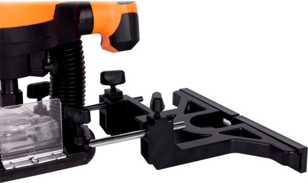 Фреза фиксируется и самоцентрируется по цилиндрической поверхности хвостовика при затягивании патрона гаечным ключом из комплекта. Параллельный (боковой) упор позволяет выполнять прямолинейное фрезерование пазов на выбранном расстоянии от края детали параллельно краю обрабатываемой детали.