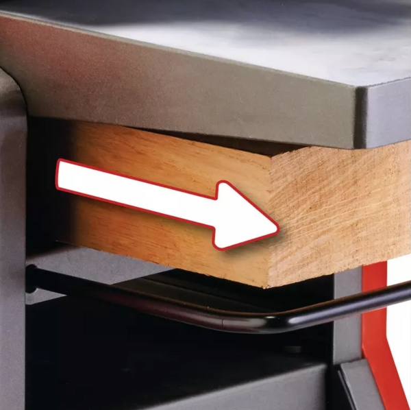 На прочном алюминиевом столе для правки со встроенным упором можно обрабатывать балки и доски со снятием не более 3 мм. Защитный кожух строгальных ножей может быть точно подогнан по ширине и высоте заготовки.