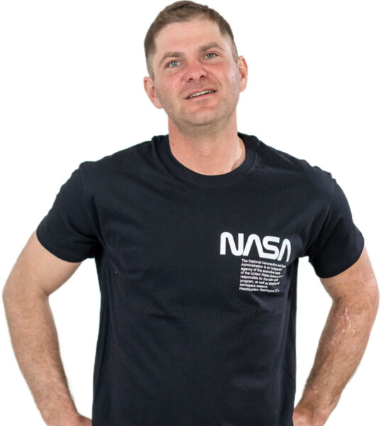 Мужская футболка с оригинальным принтом Nasa Worm, выполненная с круглым вырезом горловины, от французского бренда Sol's.