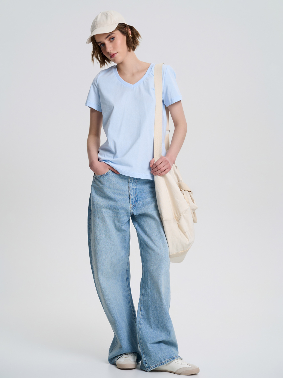 Женская футболка Roza — это удобная и универсальная модель для ежедневного использования. Изготовленная из натурального хлопка, она обеспечивает комфорт в течение всего дня и приятные ощущения на теле. Футболка имеет свободный крой, который не сковывает движений и подходит для активного ритма жизни. V-образный вырез горловины и лаконичный дизайн делают модель универсальной. Мягкая хлопковая ткань хорошо пропускает воздух, позволяет коже «дышать» и сохраняет форму даже после многократных стирок.