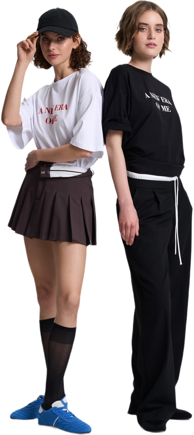 Женская футболка свободного кроя, сочетающая комфорт и современный стиль. Модель с приспущенным рукавом и классическим круглым вырезом. Спереди размещена надпись «A new era of me», которая придаёт изделию особый характер. Футболка легко сочетается с джинсами, шортами или юбками, становясь идеальным выбором для повседневных и стильных образов.
