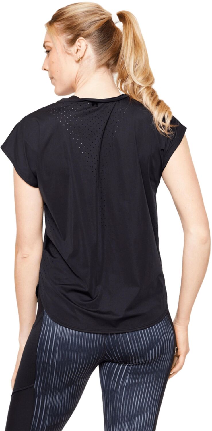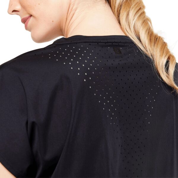 Эта футболка создана для комфортных и стильных тренировок. Крой разработан для комфорта во время выполнения упражнений. Футболка имеет лазерные вырезы на спине и по бокам для лучшей вентиляции. Изготовлена с использованием техники картирования тела. Ткань отводит пот, что обеспечивает ощущение сухости во время тренировки.