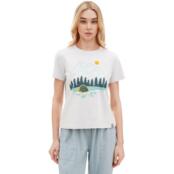Turbat Romantyka 2 Wmn - это футболка классического кроя с романтическим принтом о горах, который передает атмосферу ночевки в палатке и напоминает о приключениях среди гор