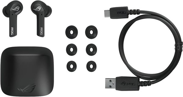 Игровые наушники ROG Cetra True Wireless: беспроводное подключение с низкой латентностью, активное шумоподавление, до 27 часов автономной работы (с использованием зарядного футляра, поддерживающего беспроводную подзарядку), водостойкость IPX4, поддержка эквалайзера и виртуального звука 7.1 (через приложение Armoury Crate)