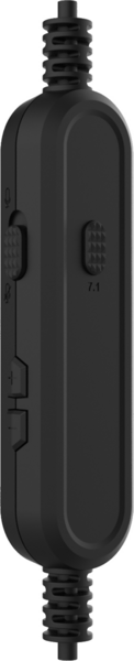 Удобный пульт управления на шнуре позволяет легко регулировать громкость, а также включать и выключать микрофон, режим виртуального объемного звучания и подсветку гарнитуры.