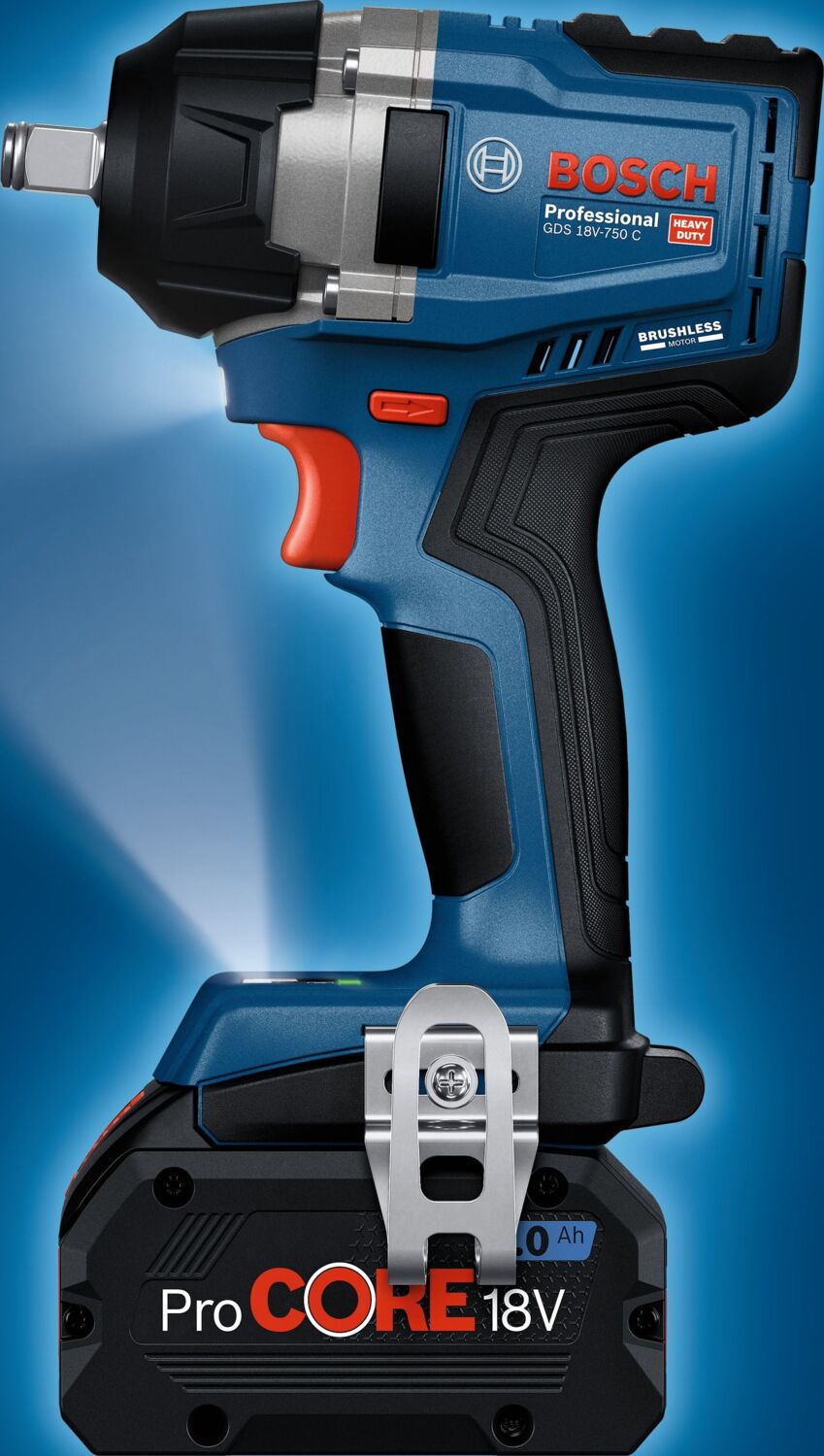 Компактный ударный гайковерт GDS 18V-750C Professional — идеальный инструмент для самых разнообразных задач. Он обеспечивает крутящий момент до 750 Нм и момент отрыва 1000 Нм, а длина его головки составляет всего 156 мм. Идеальный контроль и высокая универсальность благодаря 3 настройкам скорости вращения и крутящего момента. Пользовательский интерфейс обеспечивает прямой доступ к двум стандартным режимам: металлические винты/гайки (A) и деревянные винты (B). Оба режима обеспечивают контролируемое использование и предотвращают поломку головок винтов при вращении вправо и падение винтов/гаек при вращении влево с помощью функции Auto Bolt Release (ABR). С помощью приложения Bosch PRO360 каждый режим можно индивидуально настроить для повторяющихся применений. Функция Secure Socket Release предотвращает застревание насадки на винте/гайке. Эту функцию можно активировать только с помощью приложения.