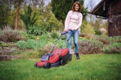 Косилку можно быстро и легко убрать в гараж или садовый сарай с помощью встроенной ручки для переноски.