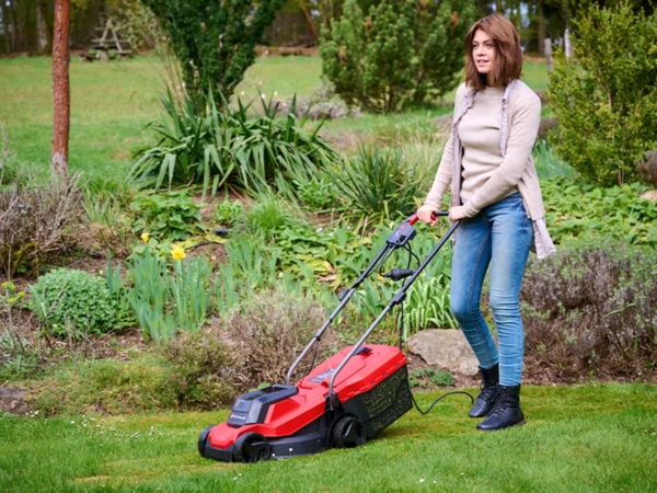 Благодаря узким колесам диаметром 140 мм и небольшому весу 9,2 кг газонокосилка особенно легкая и маневренная.