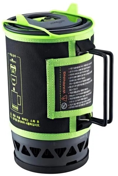 Интегрированная система для приготовления пищи в полевых условиях. Благодаря специальному обновленному теплообменнику, который располагается на дне кружки-кастрюли, тепло от пламени горелки в несколько раз быстрее передается на дно посуды, тем самым сокращая время закипания воды.