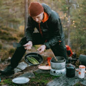 - Горелка компактная, почти не занимает места в рюкзаке. Помещается внутрь чайника, котелка, ланчбокса или упакованной плитки Trangia даже самого маленького размера.